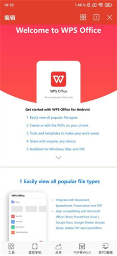 •易于通过WIFI,NFC,DLNA,电子邮件,即时消息,WhatsApp,电报,Facebook和Twitter共享办公文档