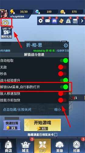 3、然后点击左上角的设置按钮即可打开gm菜单