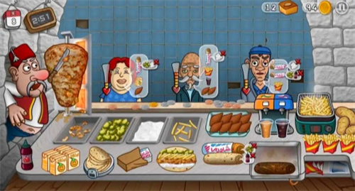 3、轻松的点击操作方式,快速将食材进行搭配,不断提供美味沙威玛卷饼。