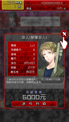 游戏中隐藏角色出现条件:还钱,还完1+5就行,不用1+5+5。