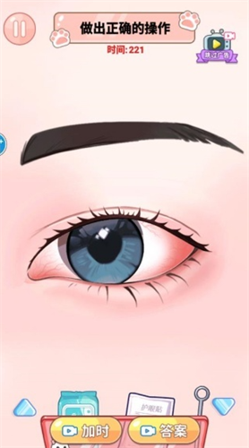 4、每个关卡模拟不同复杂程度的眼部问题,需根据情况选择合适工具与手法,最终让顾客恢复明亮双眸。
