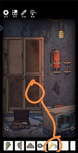 4、右转,用钥匙a开启柜子,获取铁棍。