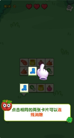 1、首先点击两个相同的卡片,可以完成连线,这样就能消除。