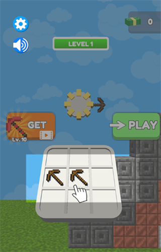 2、挖掘方块:使用升级后的镐头挖掘不同类型的方块,包括泥土、石头和稀有矿石,收集珍贵的钻石。