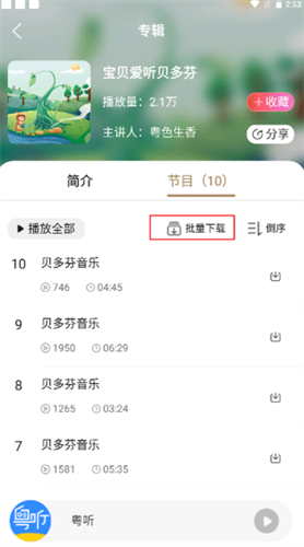 3、在节目详情页中,你可以点击“批量下载”功能键,选择你要下载的集数,点击立即下载。