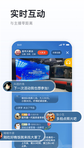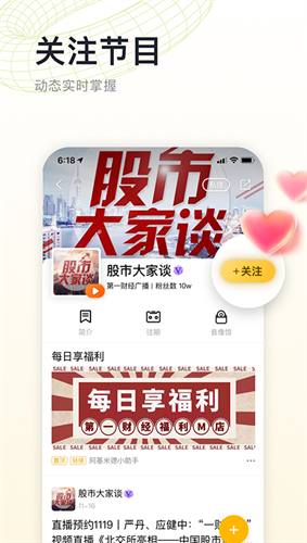 你可以关注自己喜欢的节目、主播,进入专属直播间,和你喜爱的节目主播在线畅聊。