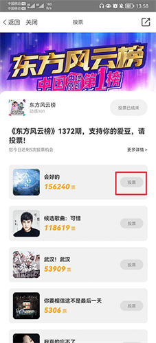 3、进入后在你喜欢的歌曲后面点击投票即可