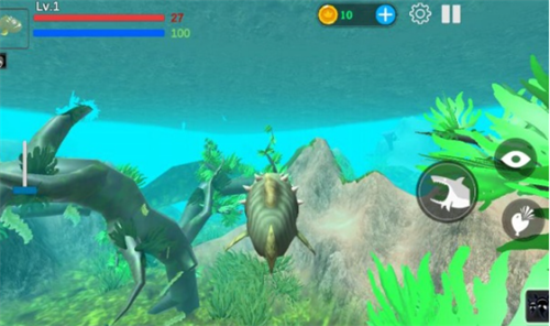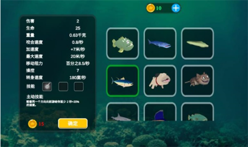 3、积累足够的进化能量后,在菜单中解锁并变身为更强大的海洋生物,如梭鱼、电鳗或鲨鱼。