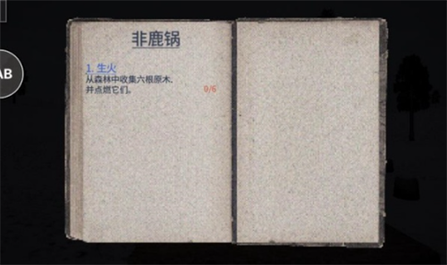 1、注意游戏中的任务,第一步先生火,在森林中寻找原木,然后点燃它们获取火源。