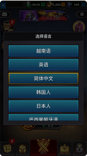点击下载安装你的游戏,在主界面点击右上角齿轮设置,再点击English选择Chinese即可切换为中文。