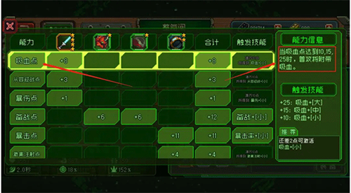 套装,和武器、戒指不同,除了装备自带的基础属性之外,还有主属性点。【维京套装】增加吸血点,【机车套装】增加攻速点,【机械套装】增加生命点,【蠊甲套装】增加备战点,【战术套装】增加激素注射点。