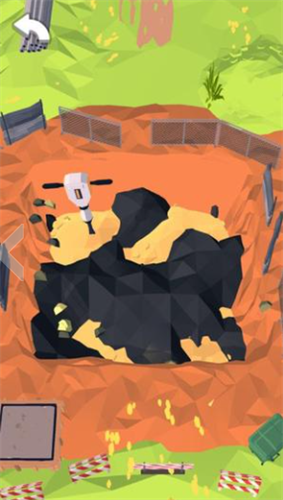 2、拆除建筑后,长按屏幕操作机器将碎石进行拆除清理。