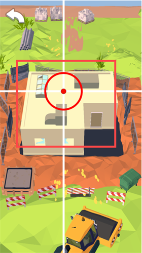1、观察红框内房屋位置,找准要拆除建筑的目标区域后,点击屏幕释放大锤进行拆除。