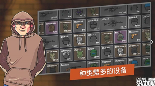 逃离阴影内置mod作弊菜单版游戏又名逃离暗影,战术射击类手游,充满冒险的挑战方式战斗让你神经高度紧张,活下去就是硬道理,装备你的人物在不同的地方进行物资收集,可以获得很多的冒险的体验,进行射击的效果,多种弹药和工具都加入到游戏中,与更多的玩家们同台竞技,角色技能十分亮眼,在这个末日生存的世界,不断的强化自己吧,探索未知的世界,维和士兵可以提供药品,增强治疗训练;装备商人可提供装备,并强化你的交易技巧训练;机械修理师可以提供枪械改造的能力,不仅如此,逃离阴影游戏内还有各种场景可供玩家挑选,每个场景都有不同的任务和奖励可以领取,但前期是你要保证自己的生存,因为在这些地方并不是只有你个人作战,来自不同派别的对手也在战争中,所以时刻保证自己的存活,并完成任务目标,即有机会获得丰厚的报酬。另外,关于游戏内的操作玩法相当简单,以2D平面为移动和射击,通过控制人物的移动和瞄准来打击你的对手,此外,在游戏中,玩家可以在自己的角色栏里装备自己的武器,依次获得更高的生存机会。