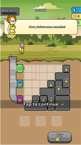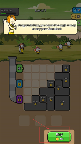 3、击败敌人后获得足够金币消耗10金币可购买首个模块,这是解锁资源模块、推进关卡的关键操作。