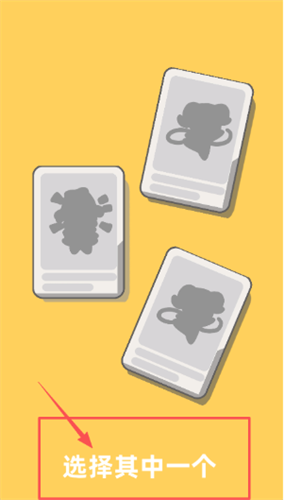 3、星探为你找到了三位候选人,卡片是灰色的,看到中间那个红色箭头和选择其中一个的提示了吗,点一下你喜欢的那张灰色卡片,就能选中这位艺人。