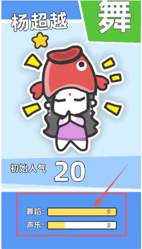 4、看到杨超越这个艺人卡的信息了吗,她的舞蹈9分声乐3分,想签约就点一下右下角那个红色的签约按钮,就能用你公司的50金币签下她。