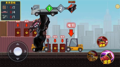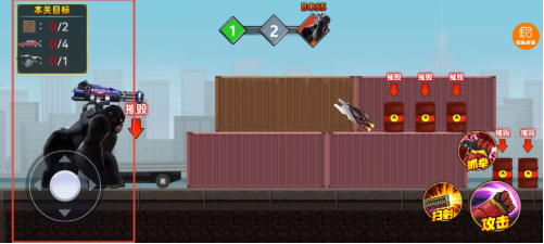 2、关卡界面左侧显示当前任务目标与虚拟摇杆,上滑操作可实现跳跃功能跨越地形障碍。