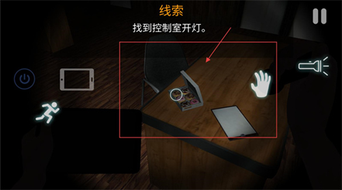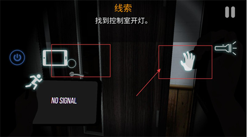 2、根据线索需找到控制室开灯,当前平板显示无信号,需利用手电筒照明,探索周围区域,定位控制室的位置,前往推进剧情。