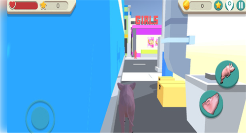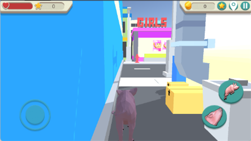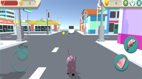 2、 游戏场景聚焦于真实的人类都市,包含街道、车辆、路灯等常见元素,猪猪与这些严肃的城市元素互动形成强烈反差萌趣味。