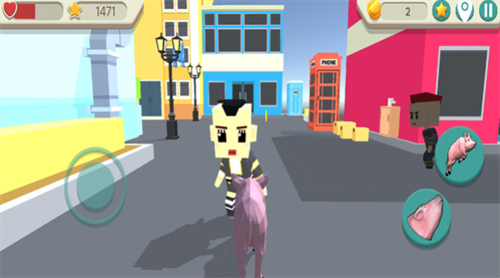 4、 玩家需操控猪猪前往城市的不同地点完成任务,同时灵活躲避警察与路人追捕,完成任务获得金币奖励,解锁个性皮肤道具。