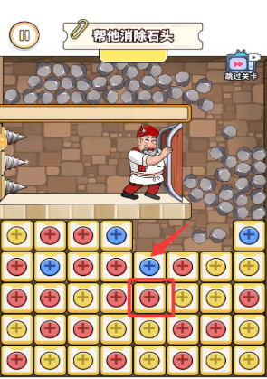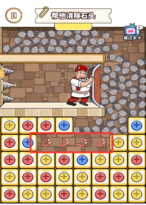 4、当消除进度条满格时顶部巨石会坠落,利用这个时机为国王开辟逃生通道即可通关。