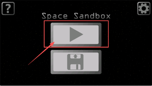 1、在游戏的主菜单界面,背景是星空,请点击画面中央那个被红框框住的、带有白色三角播放图标的蓝色按钮,就能开始你的太空沙盒游戏了。