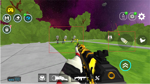 3、遭遇僵尸类敌人时,可使用武器直接攻击,也可利用右侧的火箭道具进行范围打击,这类道具能快速清理密集敌人,提升战斗效率。