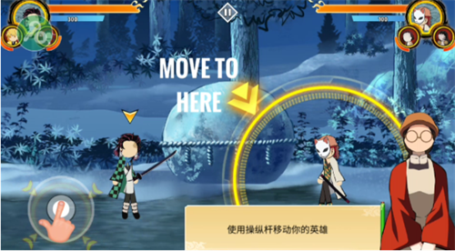 1、打开火柴人鬼灭之刃内置修改器最新版,我们先来感受一下格斗玩法,使用操纵杆移动你的角色。