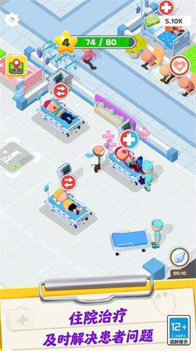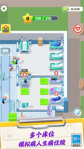 3、医院建设管理系统。通过积累声誉可逐步扩建为综合医院,解锁高端医疗设备与专科诊疗室。