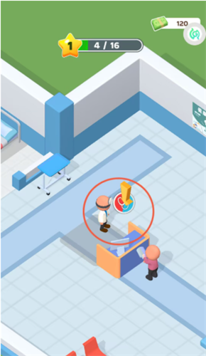 2、继续投入金币建造医疗病床设施,完成后前往前台区域为患者提供初步诊断服务。