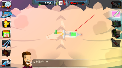 4、最后,使用注射器,按照提示立刻推动柱塞,把药剂注入角色体内,这一步是关键的治疗环节,能进一步稳定角色状况。