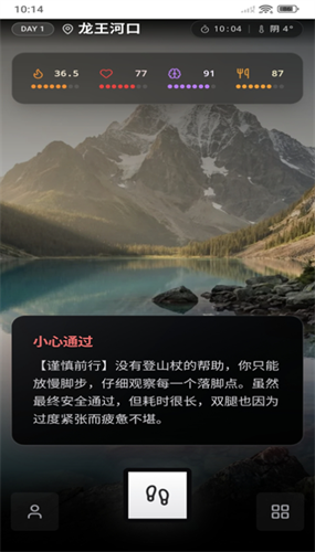 3、最后,玩家便可以进入到游戏中去,点击脚步,做出相应的游戏选择。
