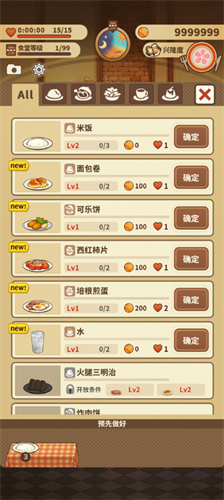 1、随着游戏进展,玩家可以提升料理等级,研发独特菜品,让餐厅更加繁荣。