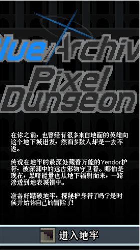 1、在下载并安装好像素地牢碧蓝档案后,打开游戏来到游戏主界面点击进入地牢开始游戏。