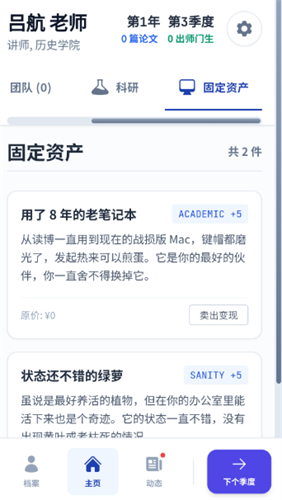 1、一款硬核的30年学术生存模拟器。