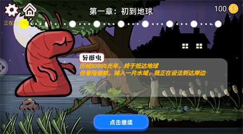 1、在下载并安装好异型虫历险记后打开游戏,进行账号登录后观看剧情了解故事背景和发展。