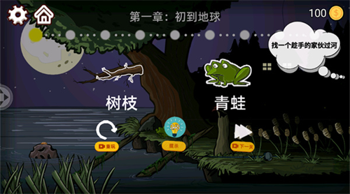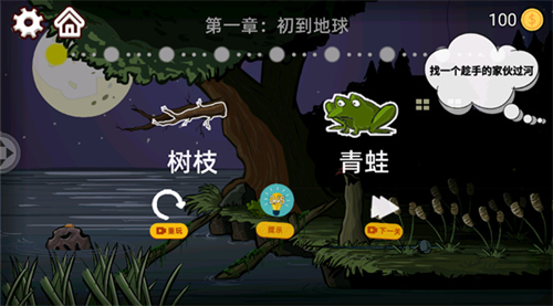 先点树枝,树枝掉下来,爬上去,点青蛙,青蛙死,点树洞,鸟飞,点鸟原来站的那木头,木头倒,点鱼竿,杆架过来,点水里石头,鱼来,点虫,虫爬杆,点几下杆。