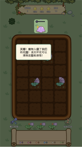 3、魔法花匠游戏中的图形都非常的优美,各种各样不同的花经过你的手生长出来,最后消除坏花击败魔物,非常的治愈。
