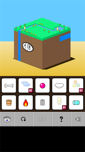 2、简洁的场景,一个方块加上一些道具,玩家合理的使用道具即可。