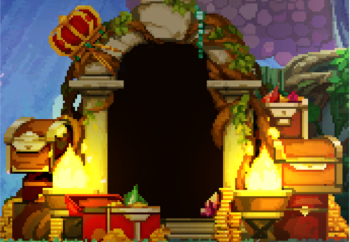 三种不同的门:绿门、普通门、宝箱门,分别表示下一个房间的通关奖励:绿门房间奖励头骨,普通门奖励金币,宝箱门奖励一件随机道具。前期推荐有绿门就选绿门,奖励的头骨不需要就分解成骨粉,用于之后升级头骨;没有绿门可以优先宝箱门,也可以根据自身需求选择。