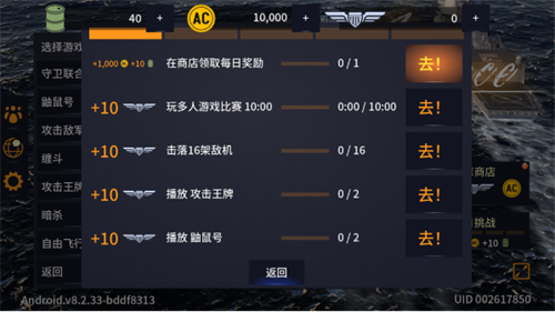 6大游戏模式考验你的空战飞行技能:缠斗、编队攻击、编队防御、斩首攻击、暗杀攻击和自由飞行。