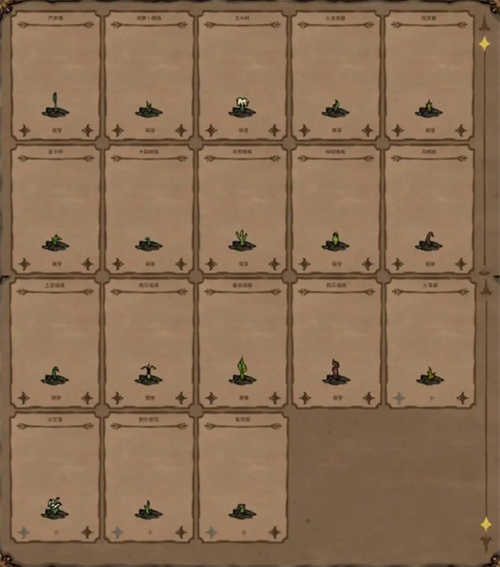 如果满足上述的所有条件,那就会长出对应的巨大作物,每种作物对应的种子的图鉴。