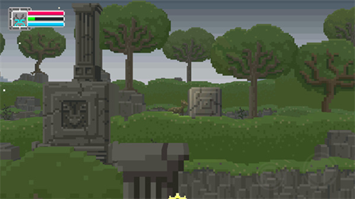 1、复古的像素艺术画风,打造了美轮美奂的冒险世界。