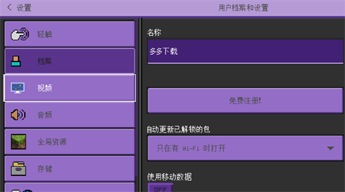 2、其中我们可对游戏内的操控、声音、画质、账号、资源包等各项数据进行自定义的设置。