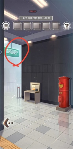 2、站外右转,点击上方牌子,得知对应字母KEY,返回失物招领处输入