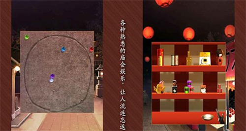 4、使用精美的图形和精心设计的场景,创造一个神秘的庙会氛围,让玩家沉浸其中。