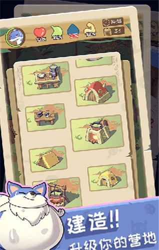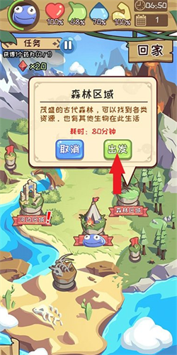在完成了一天的探索之后就可以让果冻怪休息啦,点击营地,然后就可以选择休息时间,恢复体力和生命。