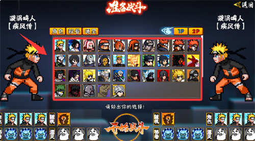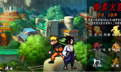 经典复古的像素风图形打造的各种帅气忍者,可以操控这些忍者来同其它动漫之中的角色进行格斗。