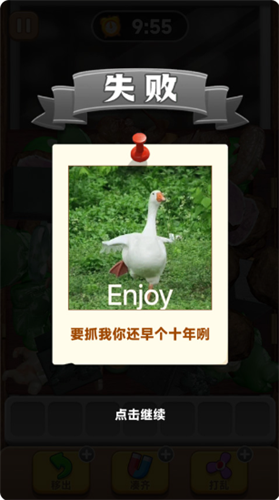 5、如果在规定时间没有成功消除所有物品,抓到大鹅则游戏失败;